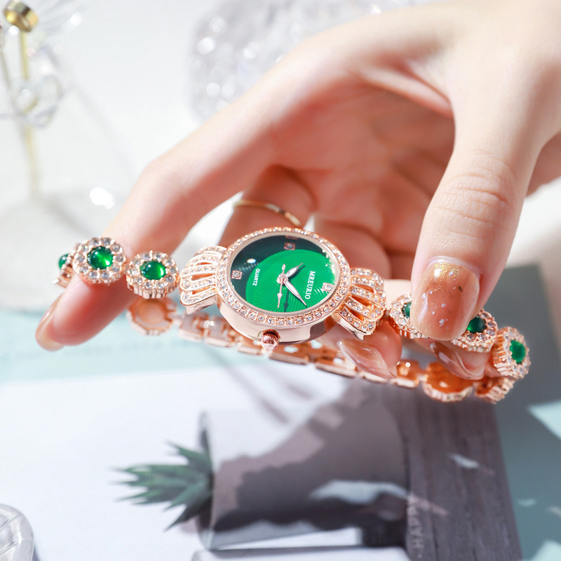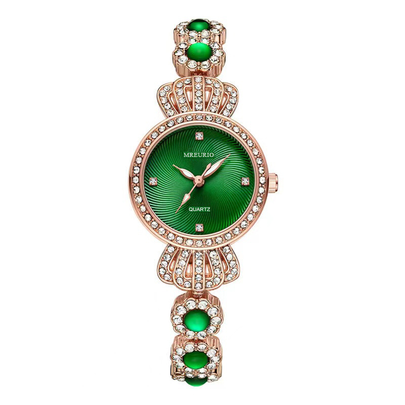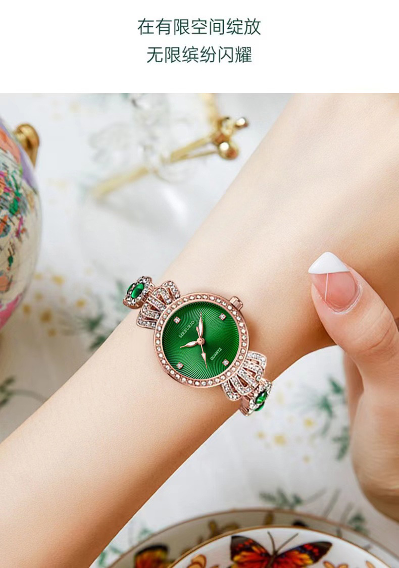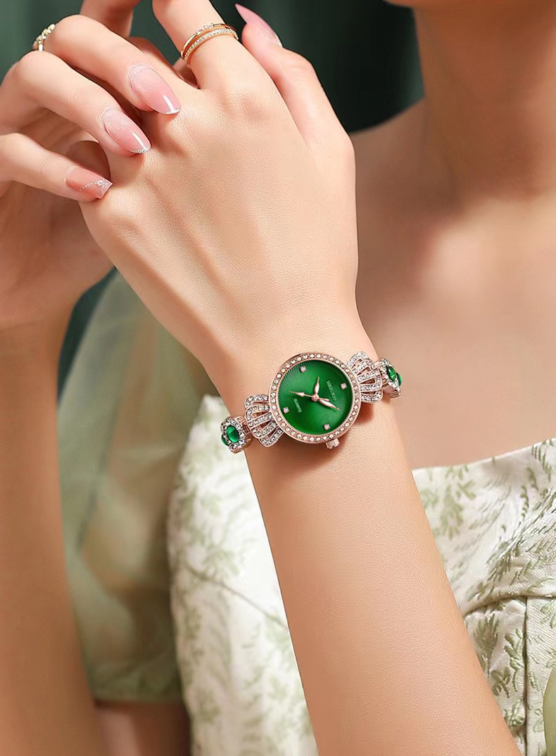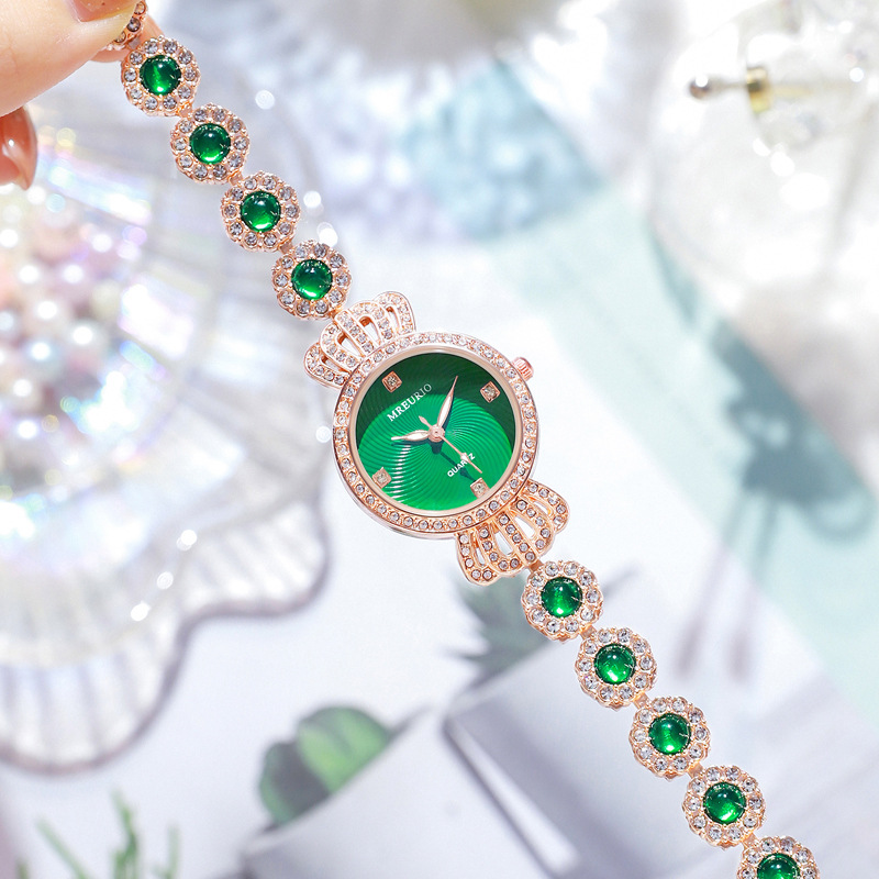 Luxurious Diamond And Emerald Ladies Bracelet Watch