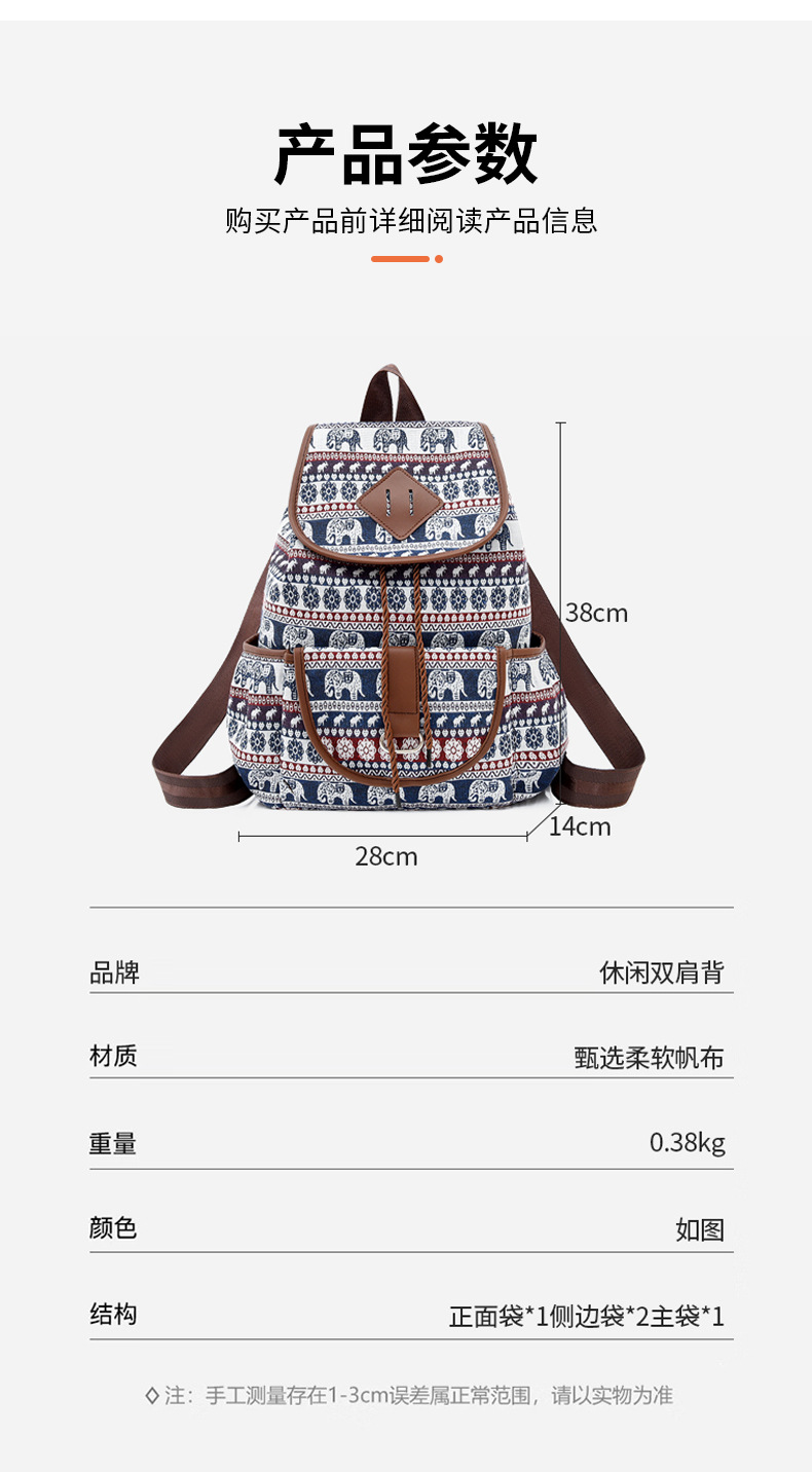 Style: Canvas Backpack Dimensions: 28*14*38