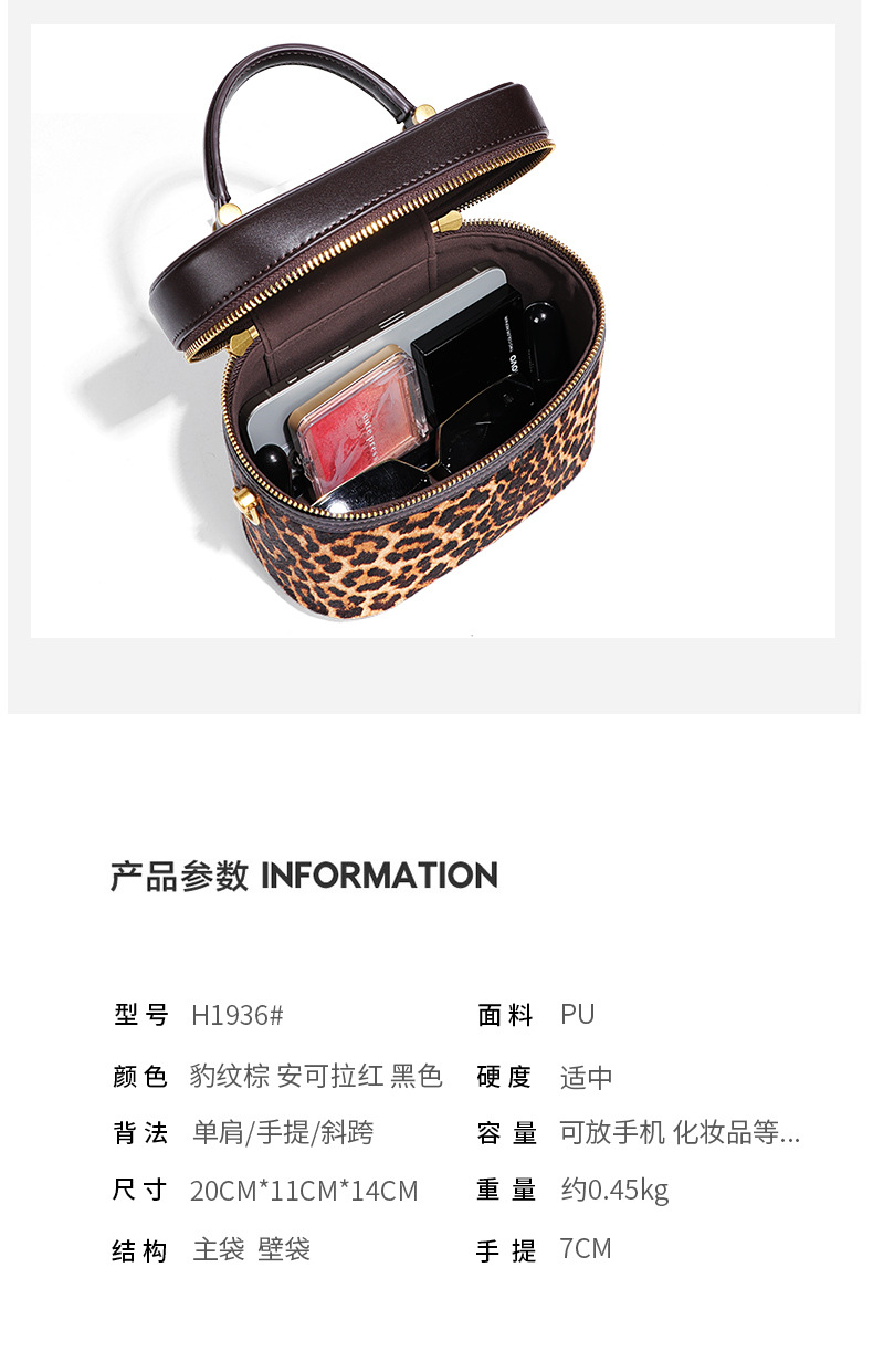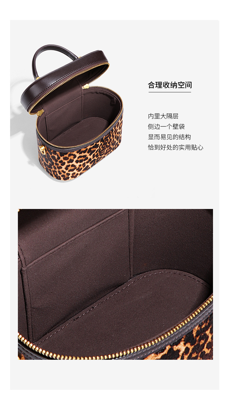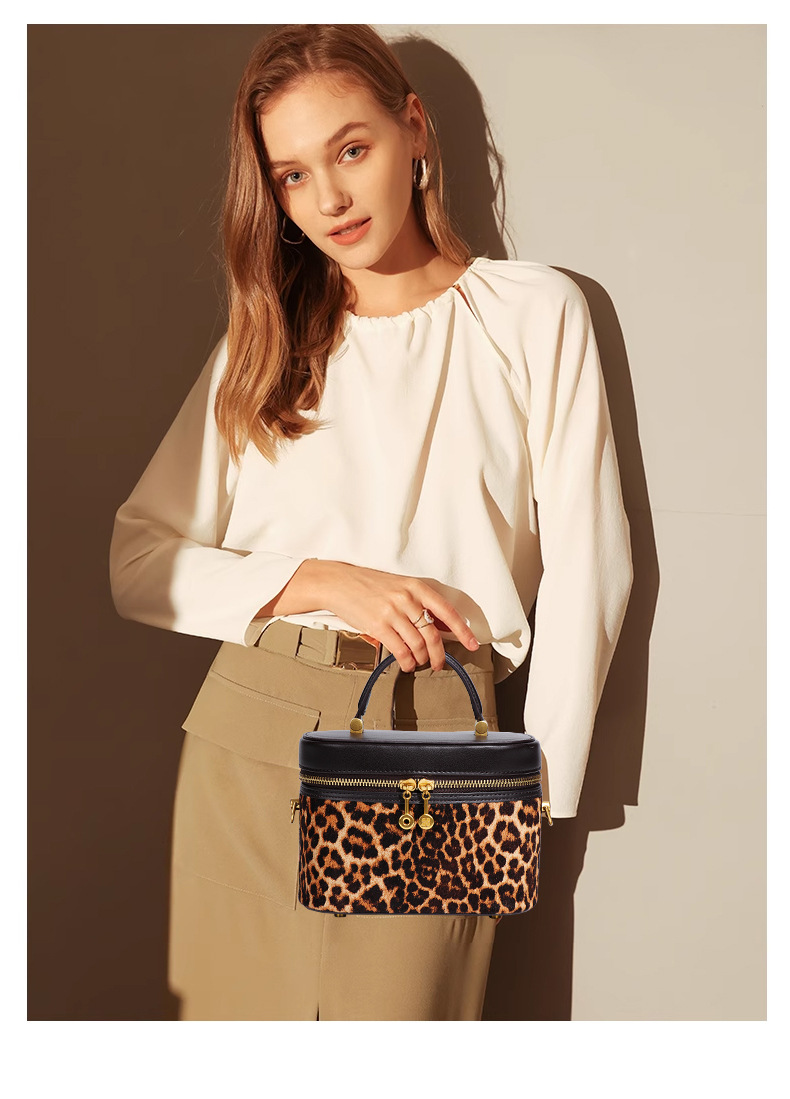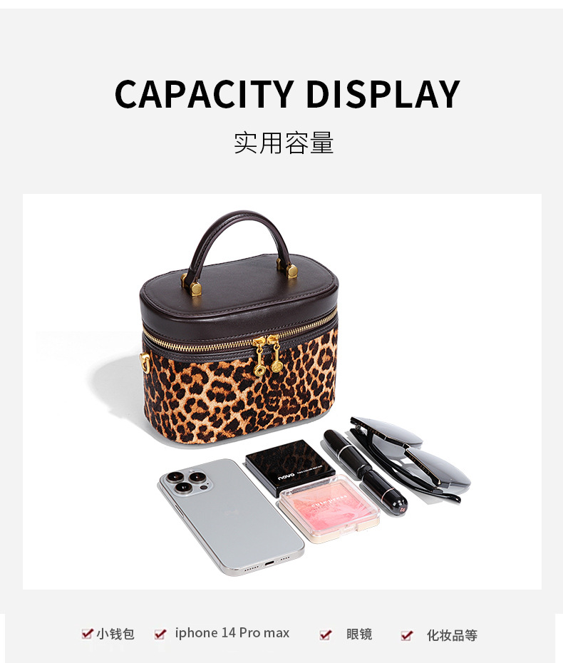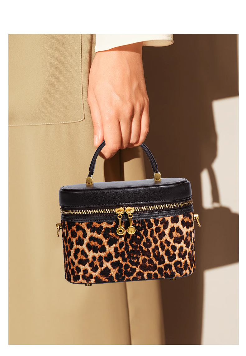 Stylish Leopard Print Black Leather Portable Cosmetic Bag With Stylish Design