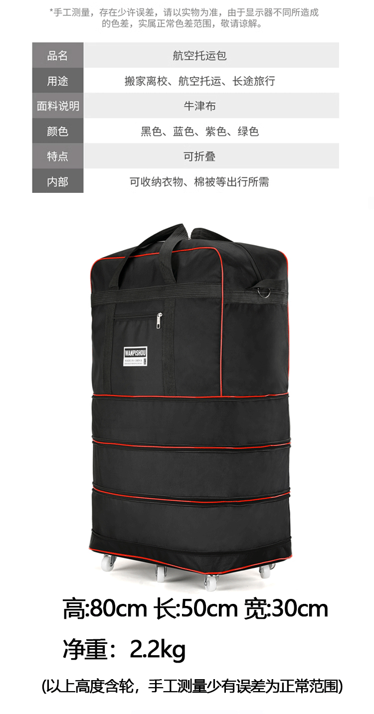Universal Wheel Three-layer Large Capacity Moving With Wheels Foldable Travel Bag