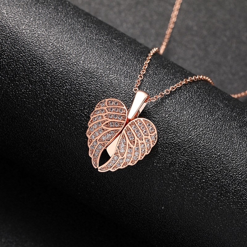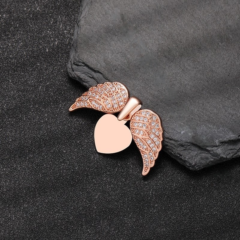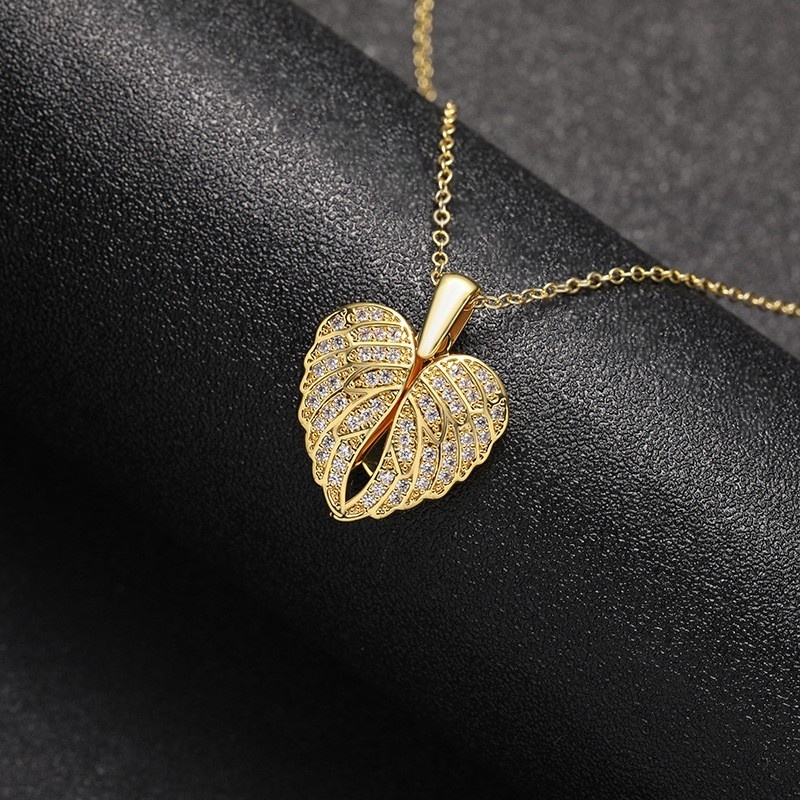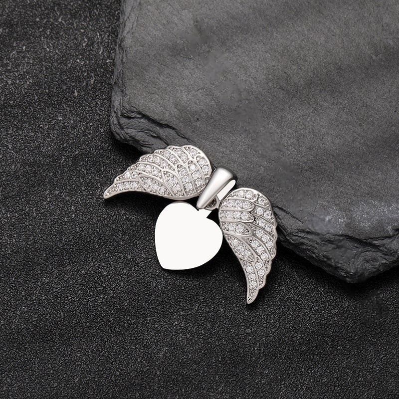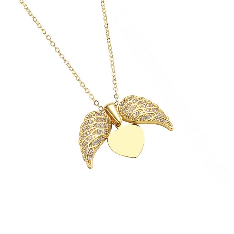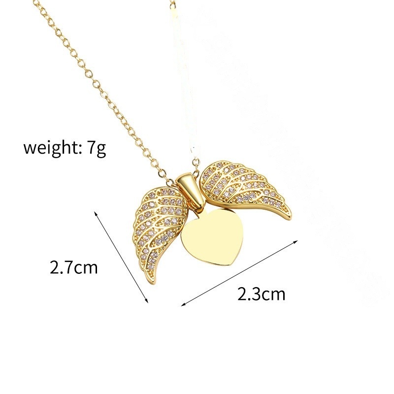 Home Jewels Necklace High-end Love Angel Wings Full Diamond Hip-hop Heart-shaped Pendant